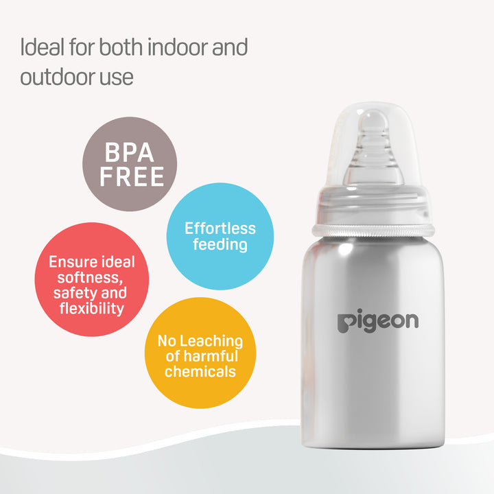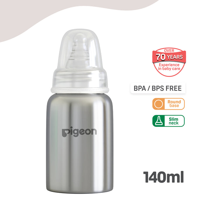 Pigeon Slim Neck steel bottle 140ml M size with plastic hood & cap (natural)
