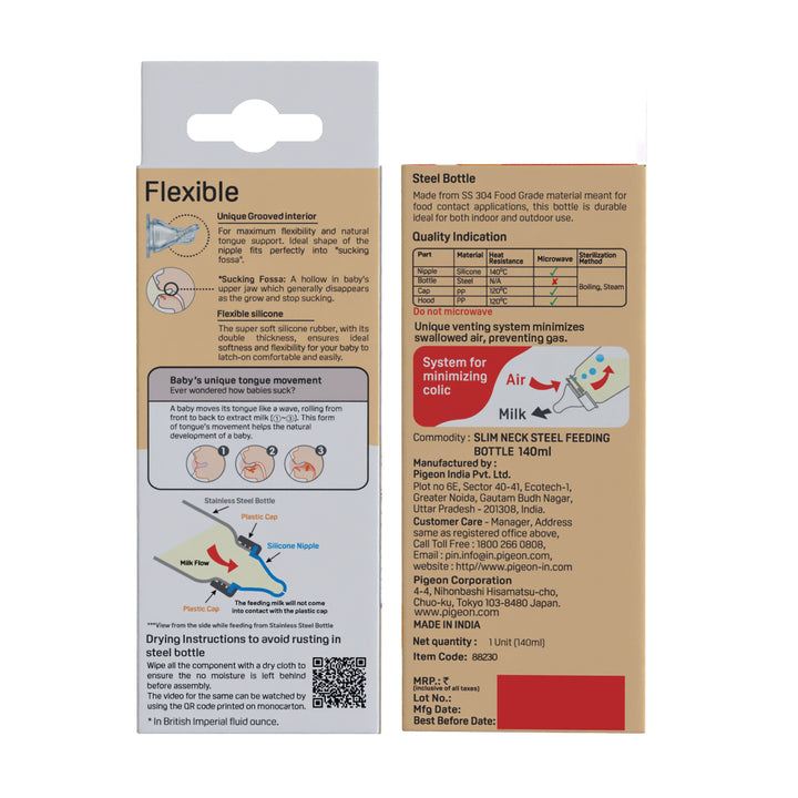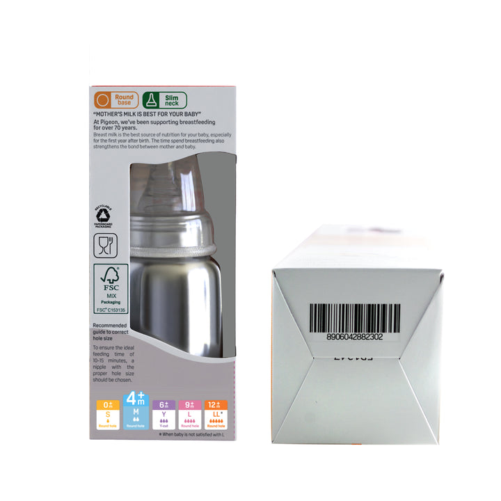 Pigeon Slim Neck steel bottle 140ml M size with plastic hood & cap (natural)