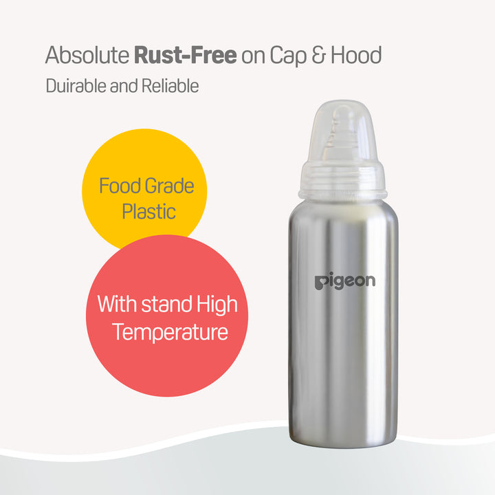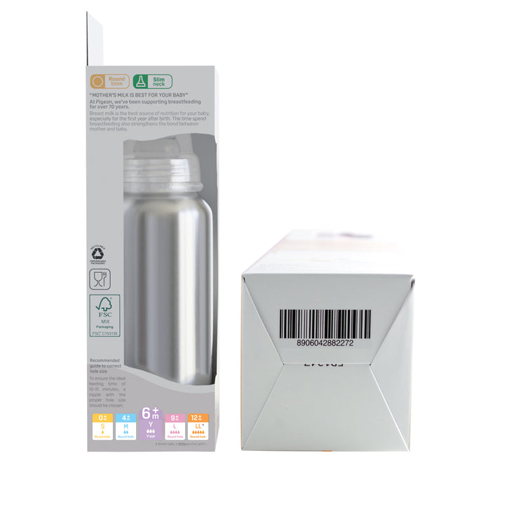 Pigeon Slim Neck steel bottle 240ml Y size with plastic hood & cap (natural)