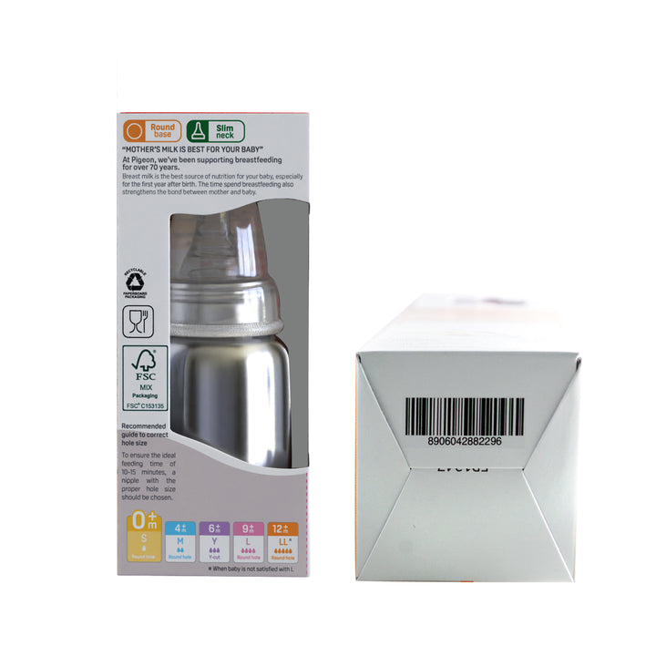 Pigeon steel bottle 140ml S size with plastic hood & cap (natural)
